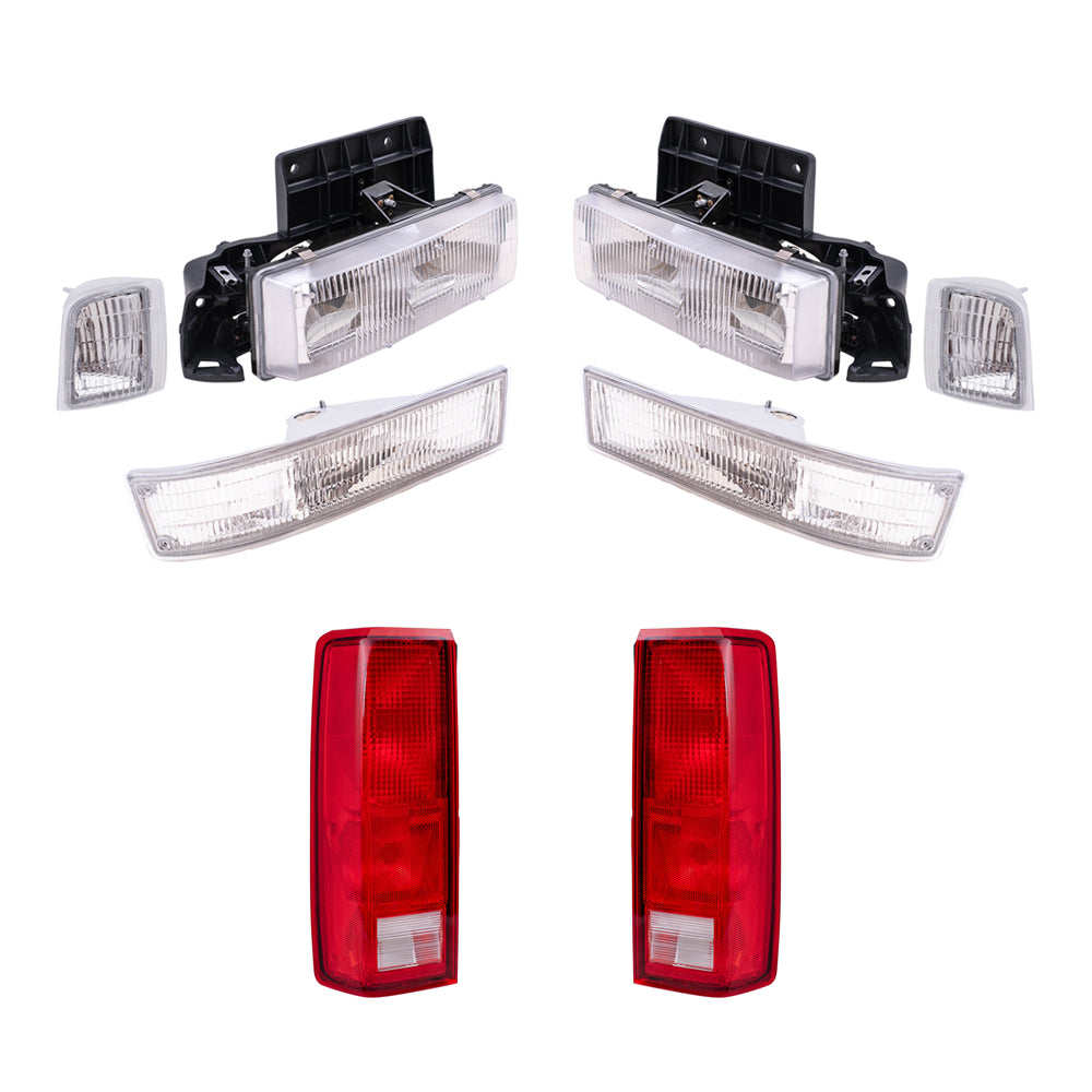 Brock Replacement Headlights Tail Lights and 4 Pc Park Signal Lights Compatible with 1995-2005 Astro Safari