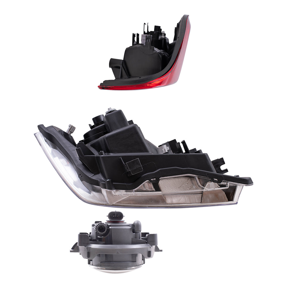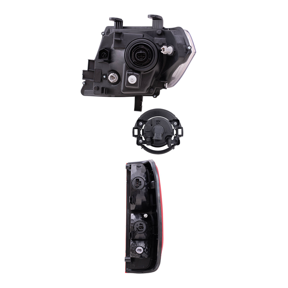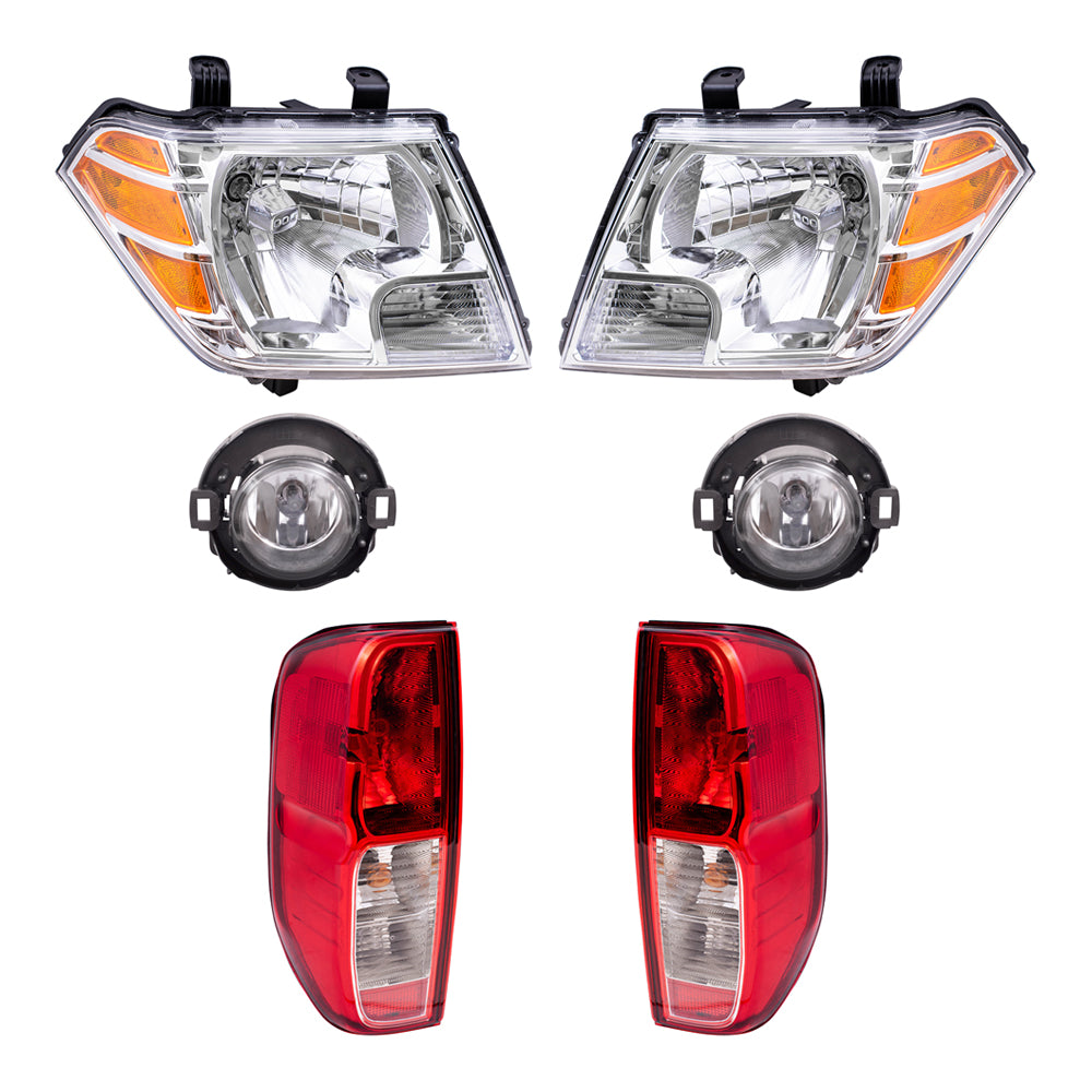 Brock Replacement Driver and Passenger Side Halogen Combination Headlights, Fog Lights and Tail Lights 6 Piece Set Compatible with 2010-2014 Frontier with Plastic Bumper