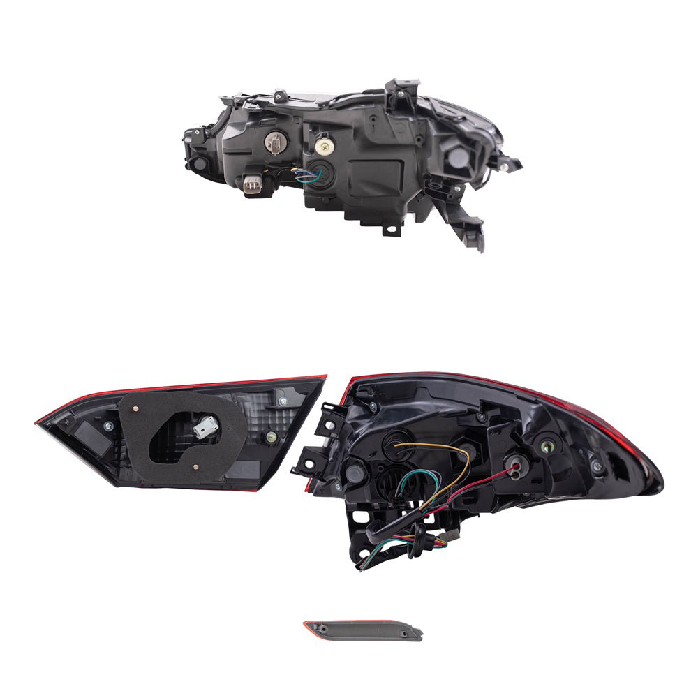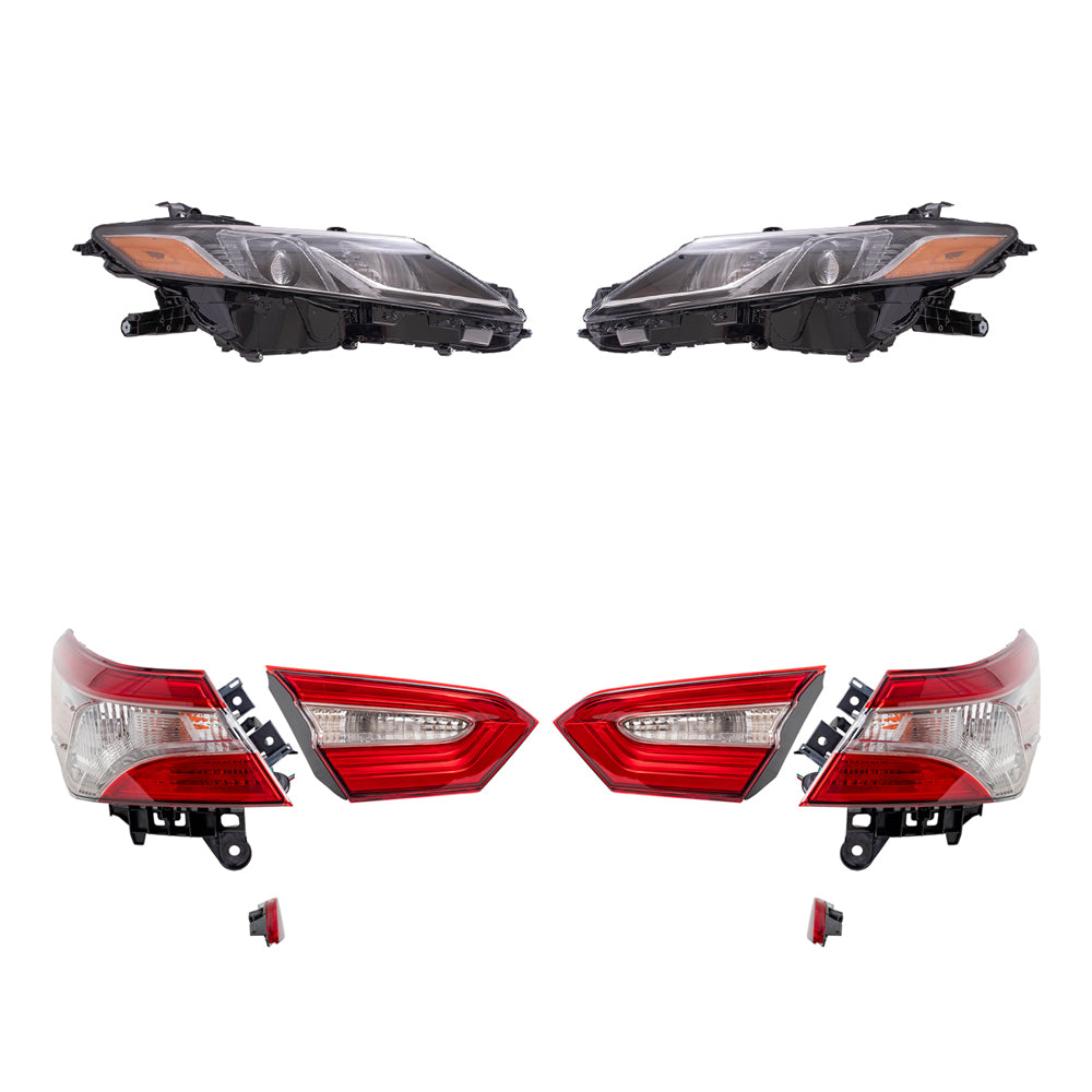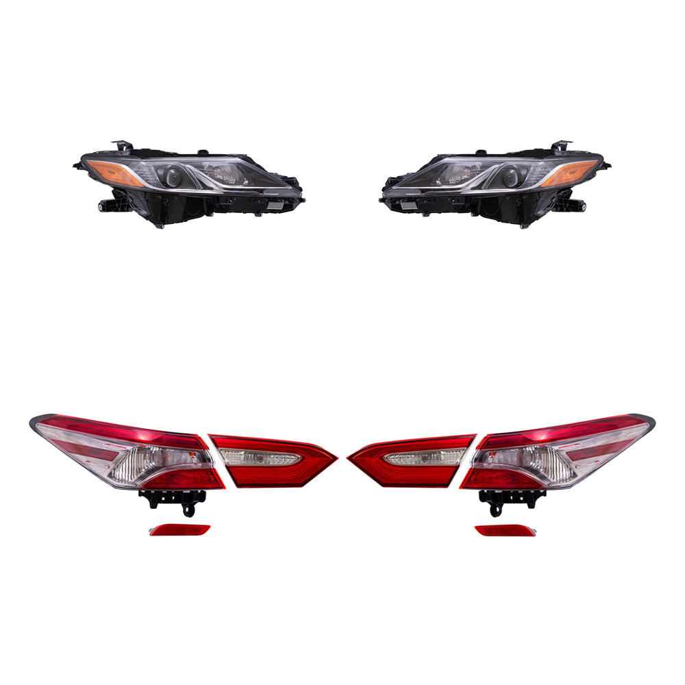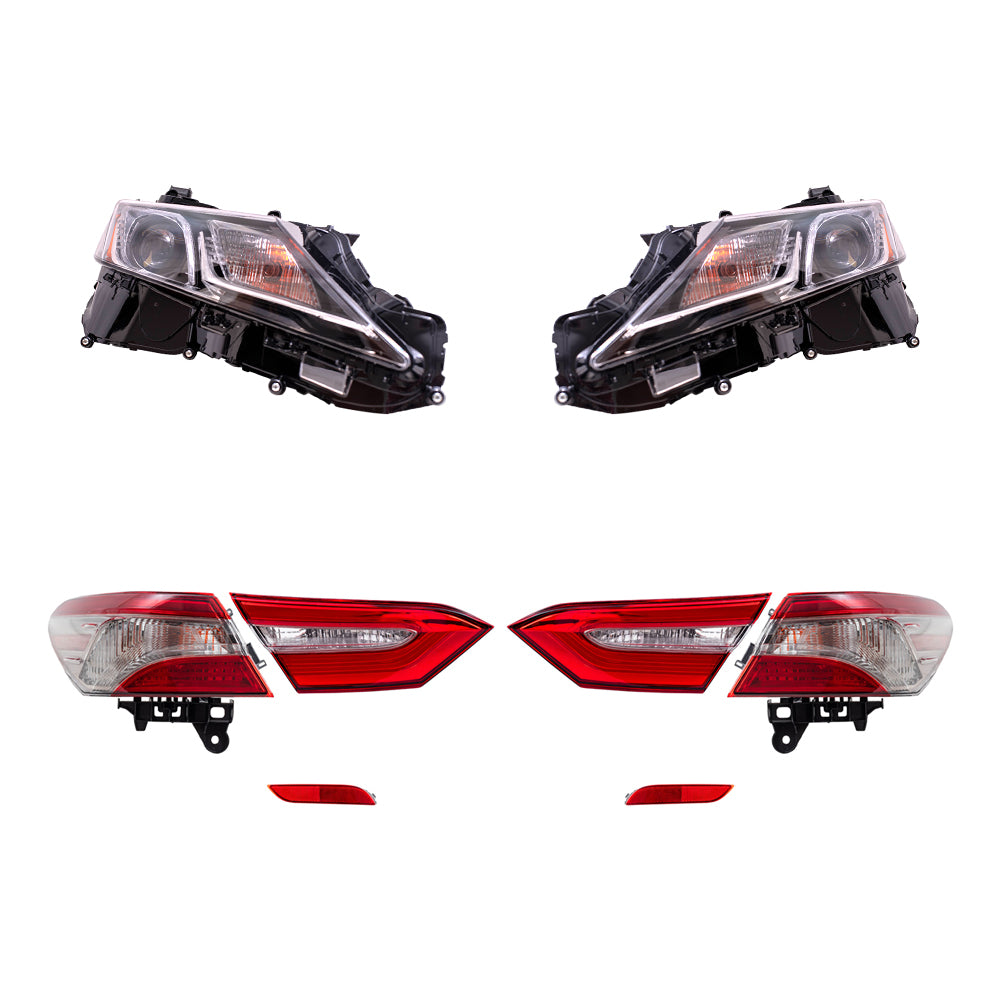 Brock Replacement Driver and Passenger Side Headlights, Tail Lights Quarter Mounted & Lid Mounted, and Bumper Reflectors 8 Piece Set Compatible with 2019-2020 Camry SE & 2019 Camry Hybrid SE