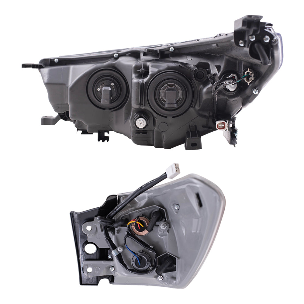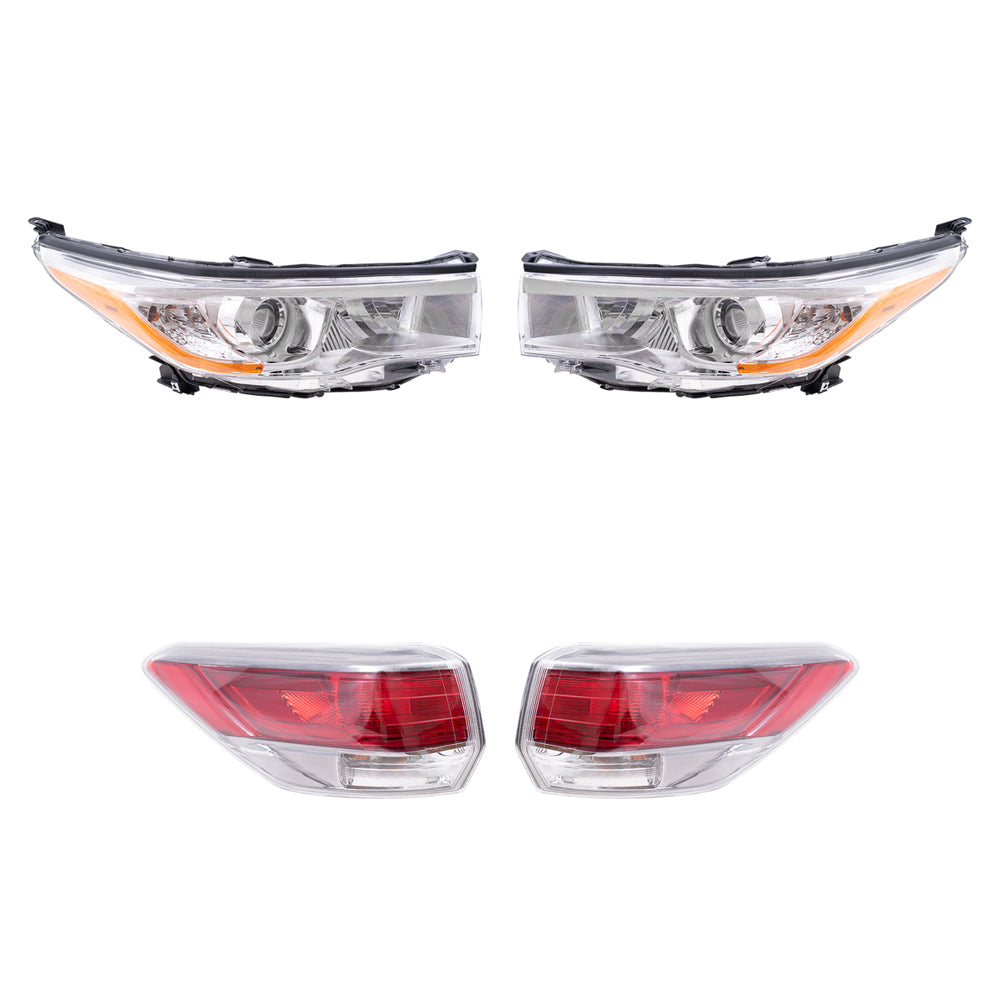 Brock Replacement Driver and Passenger Side Headlight W/O Smoked Chrome Accent and Quarter Mounted Tail Light Assembly 4 Piece Set Compatible with 2014-2016 Highlander/Highlander Hybrid