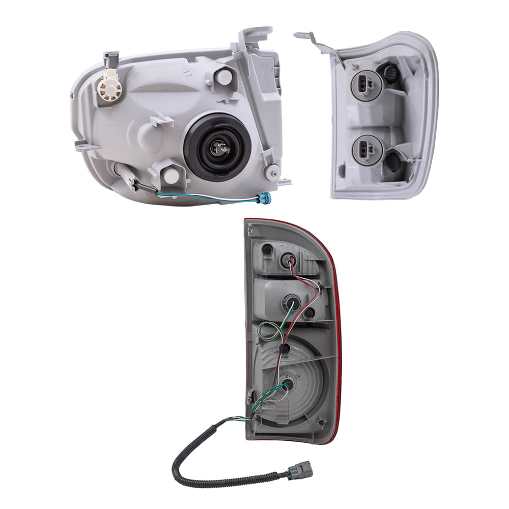 Brock Replacement Driver and Passenger Side Halogen Headlight Assemblies, Signal Light Assemblies and Tail Light Assemblies 6 Piece Set Compatible with 2005-2006 Tundra Double Cab with Standard Bed