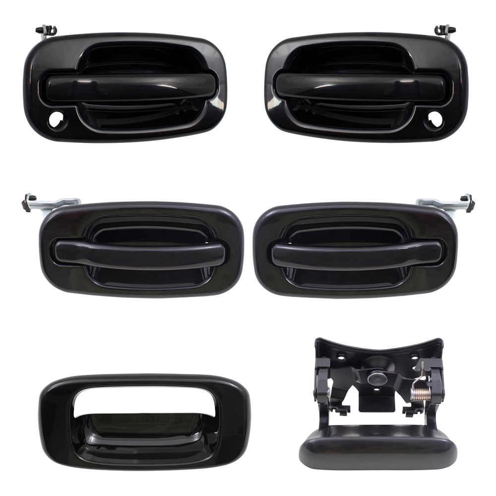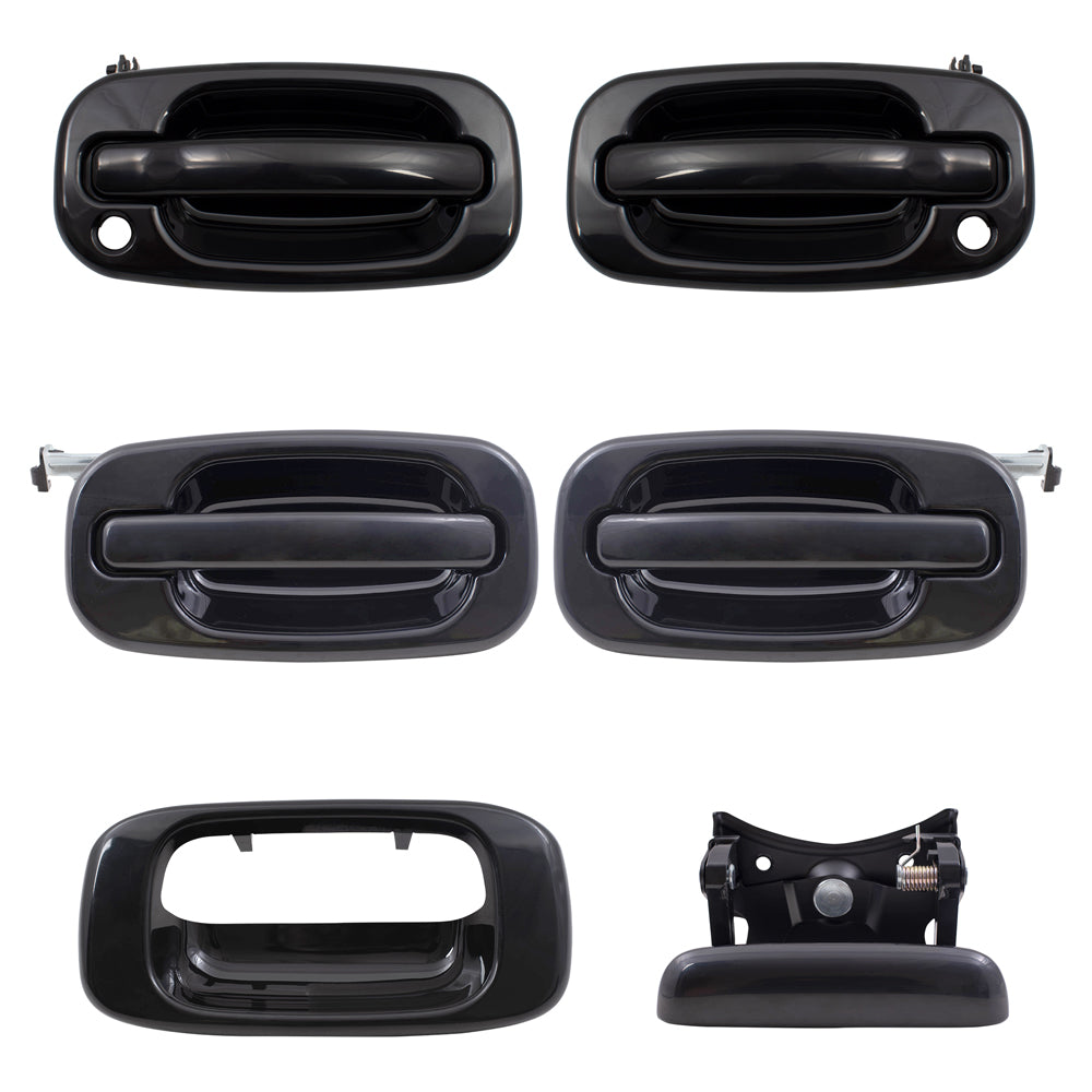 Brock Replacement Front and Rear Outside Door Handles, Tailgate Handle and Tailgate Handle Bezel Paint to Match Black 6 Piece Set Compatible with 2001-2007 Silverado & 2001-2007 Sierra