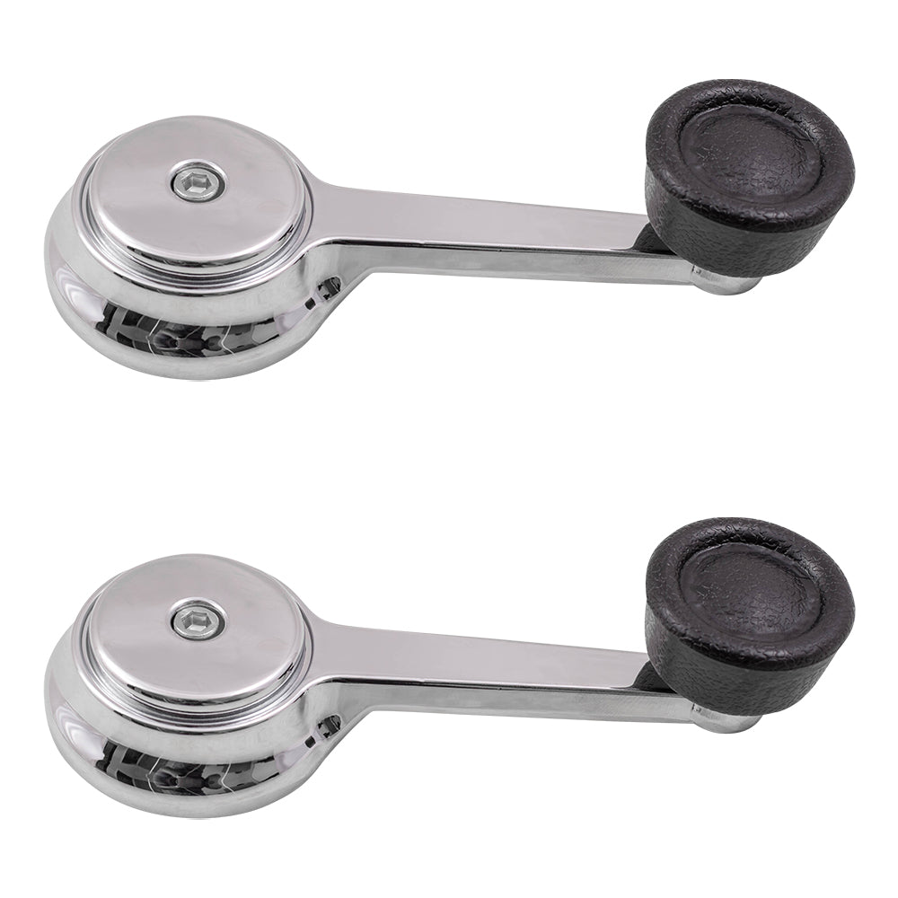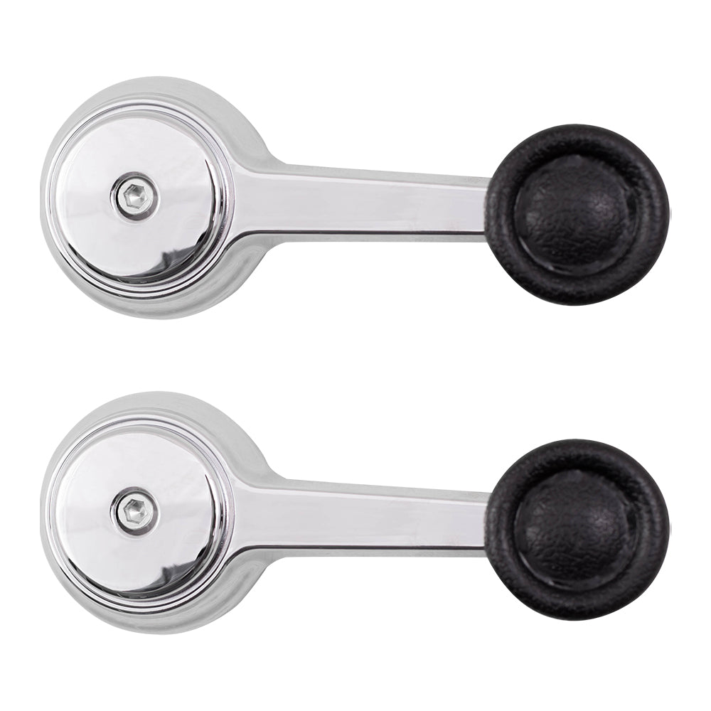 Brock Replacement Pair Set Manual Window Crank Handles Chrome with Black Knobs compatible with SUV Pickup Truck 35025098 5AB84LX9