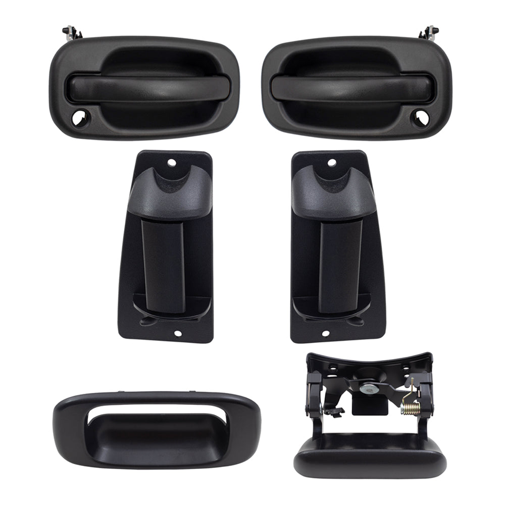 Brock Replacement Front and Rear Outside Door Handles, Tailgate Handle and Tailgate Handle Bezel 6 Piece Set Compatible with 1999-2007 Silverado & 1999-2007 Sierra Extended Cab ONLY
